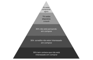 Veja a pirâmide abaixo, ela é fruto de um estudo realizado por Chet Holmes, que originou o livro The Ultimate Sales Machine: